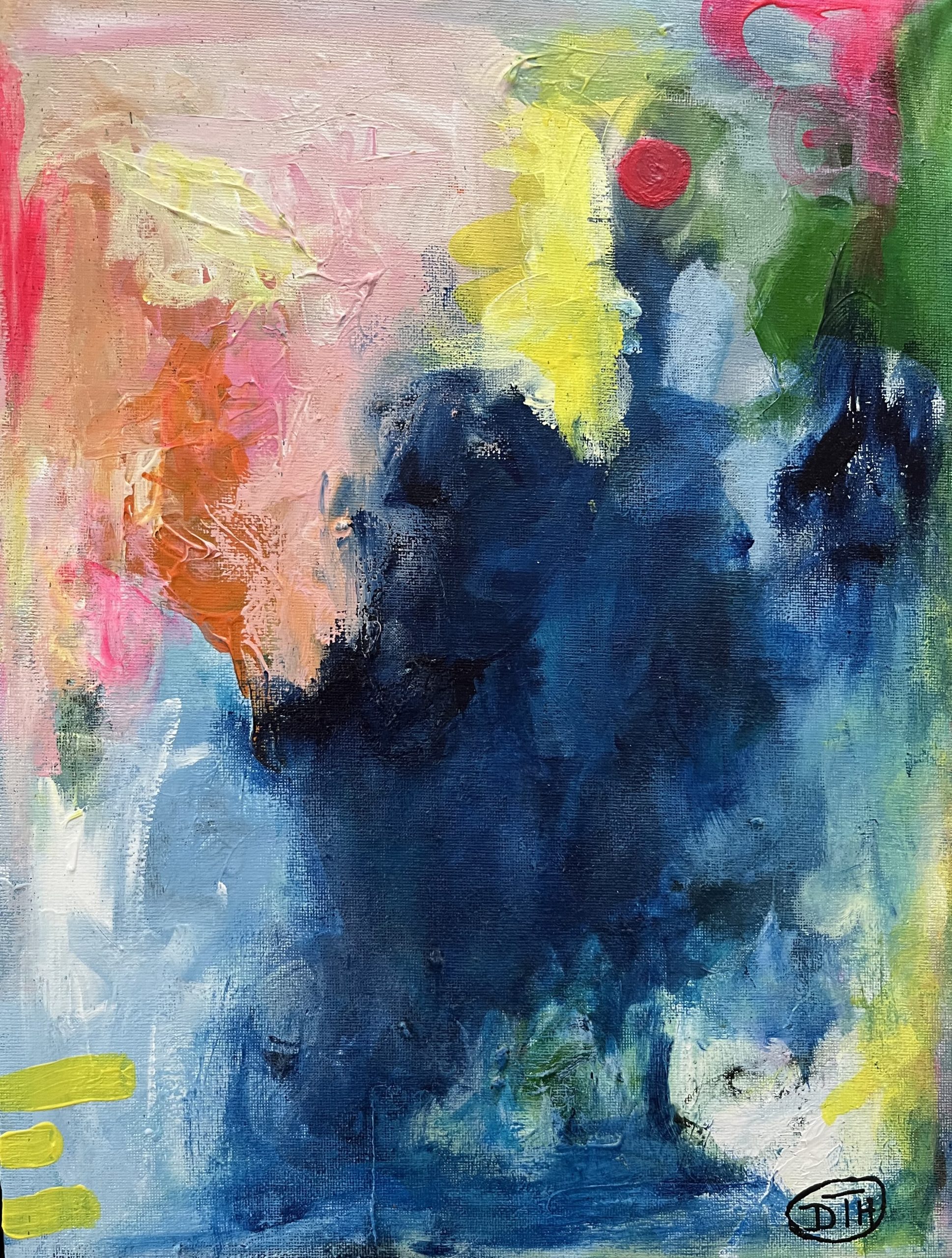 Abstrakt maleri 30 x 40 cm i sølvramme